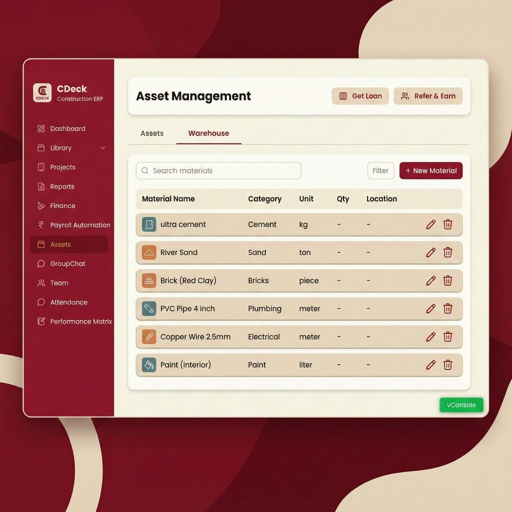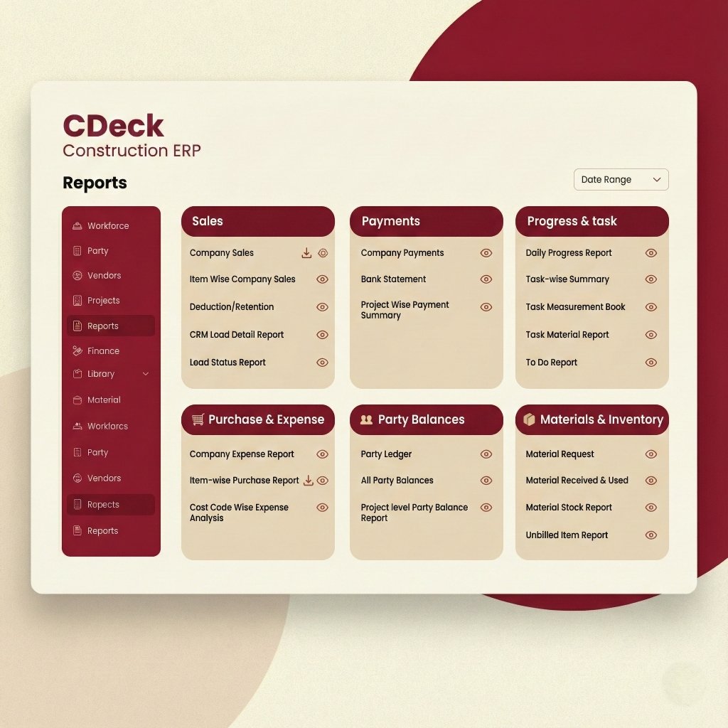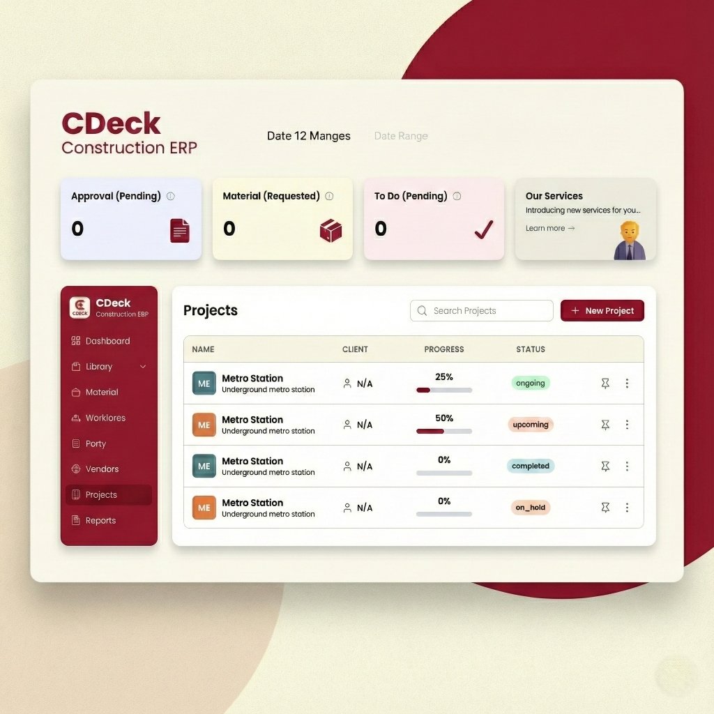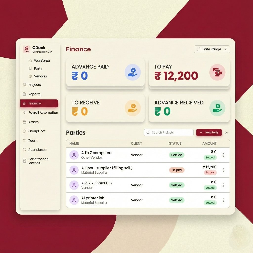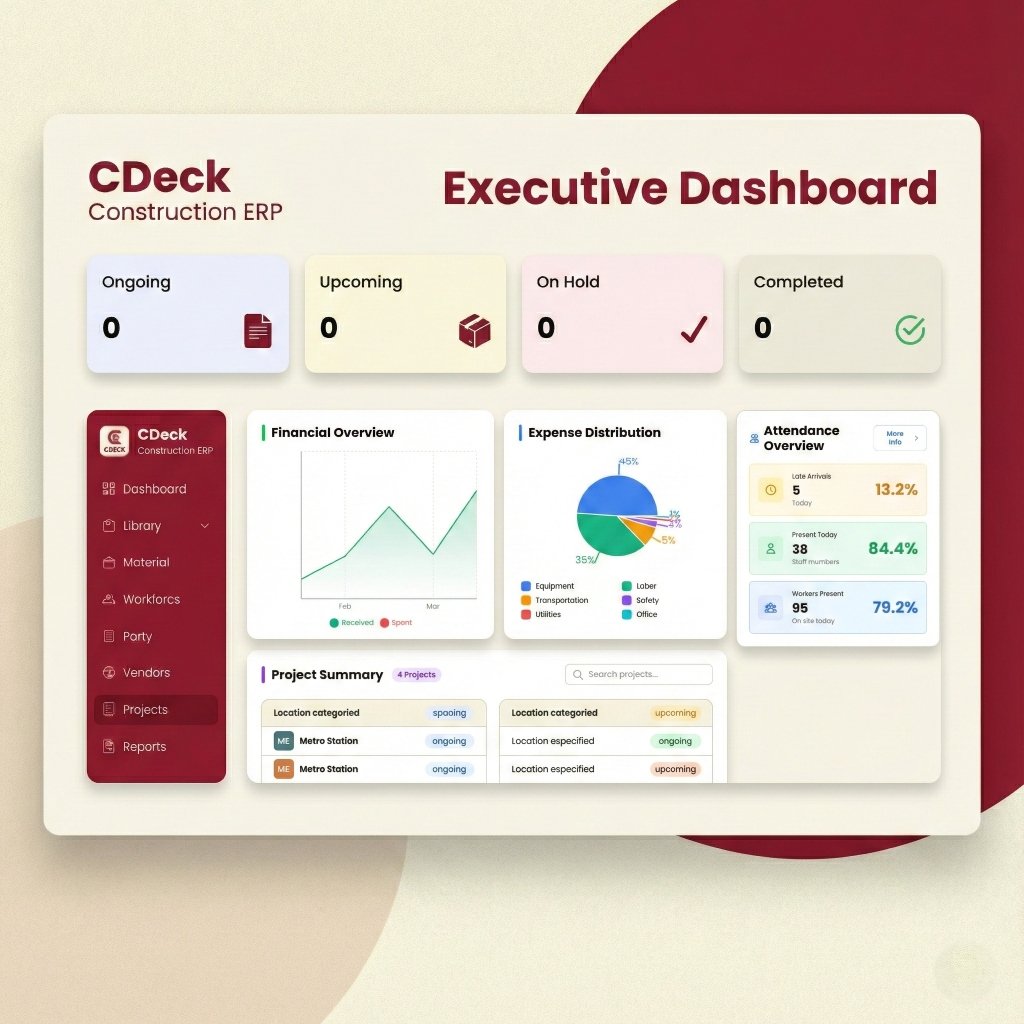 C-Deck ERP is your comprehensive platform for construction excellence. From initial planning to final handover, manage projects, resources, vendors, and finances with precision. Built specifically for India's construction industry.
